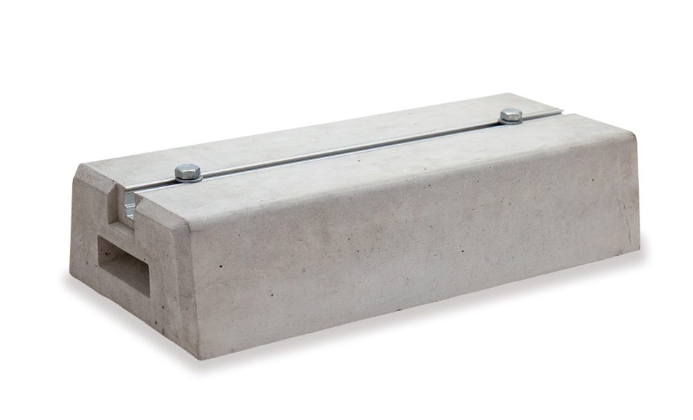 コンクリートベースに埋め込まれたアルミレールへ、ログラック脚部のプレートをボルトナットと共に締め込むだけの簡単施工。