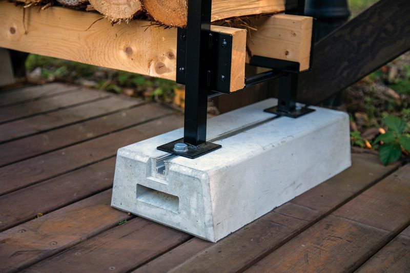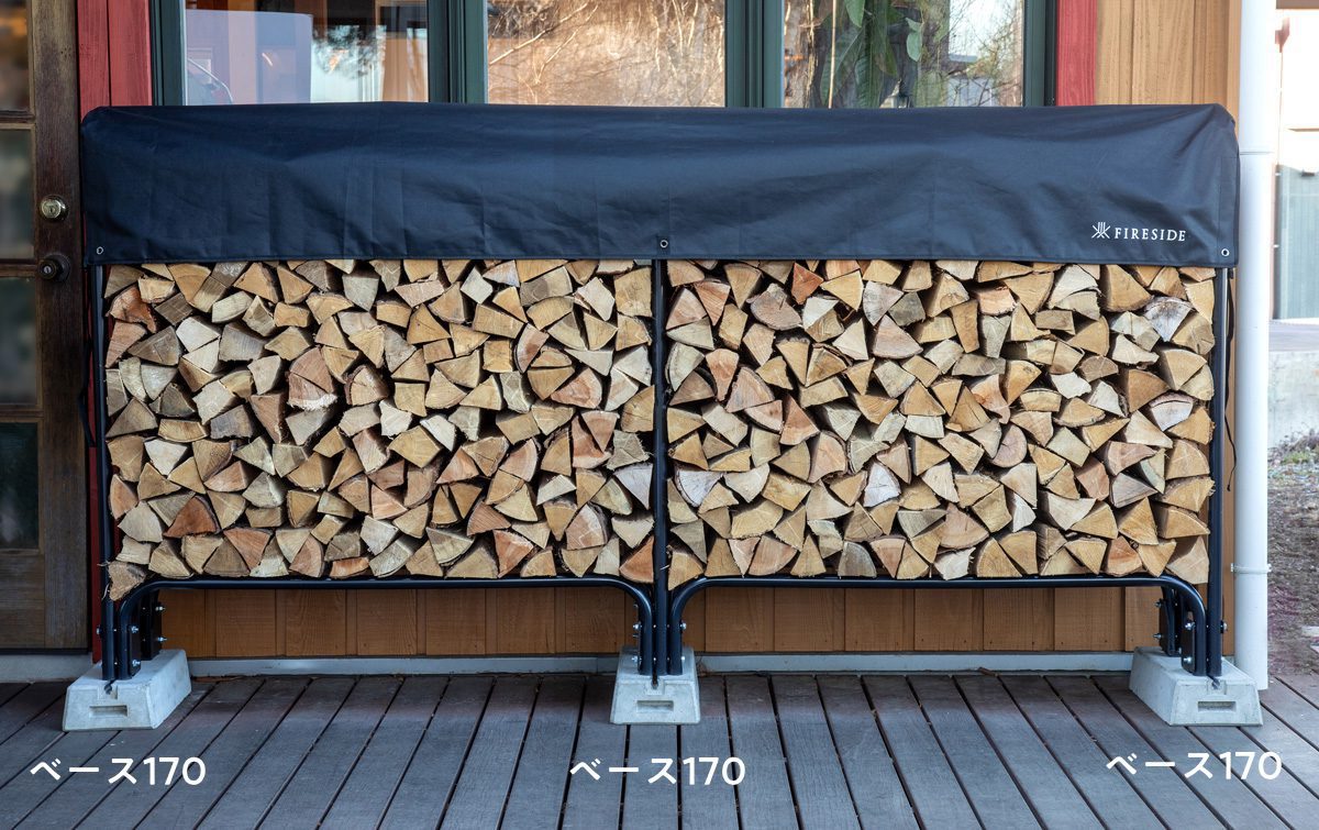 専用設計の幅広底面が荷重を受け止め、ログラックの転倒防止対策になります。設置にはベース170を推奨しますが、170が設置できないスペースの場合はベース80を利用します。