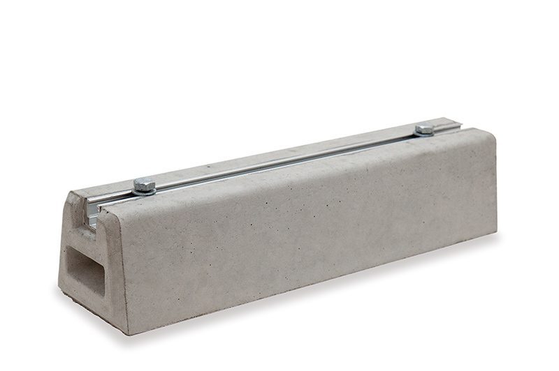 コンクリートベースに埋め込まれたアルミレールへ、ログラック脚部のプレートをボルトナットと共に締め込むだけの簡単施工。