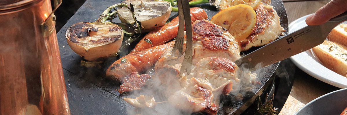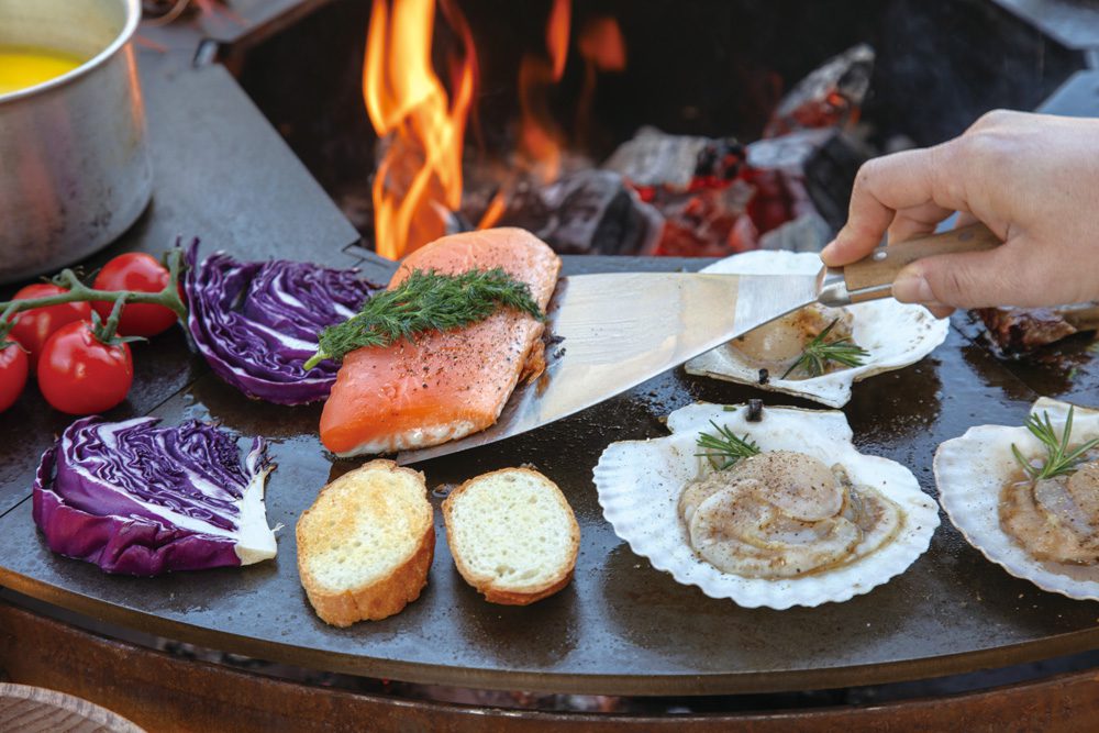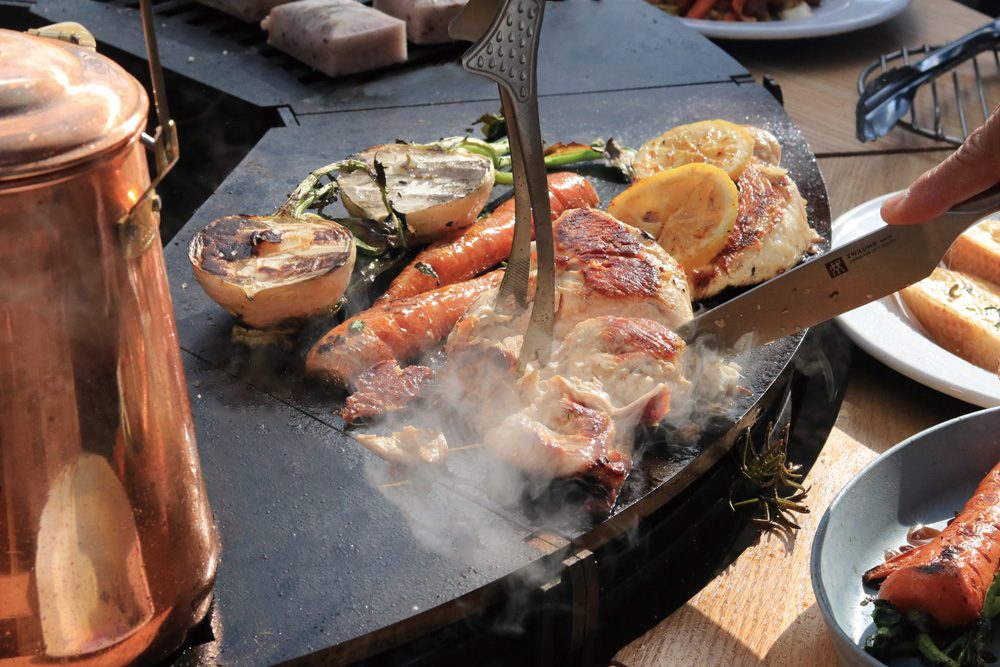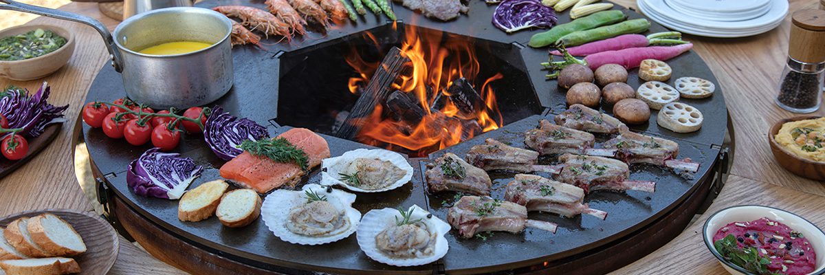 鉄板焼きはもちろん、鍋でスープを温めたり、スキレットでアヒージョを楽しんだり、チーズを溶かしてフォンデュを囲むことも。