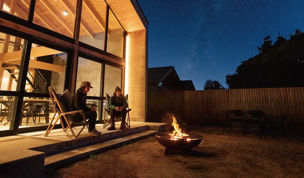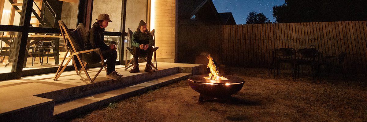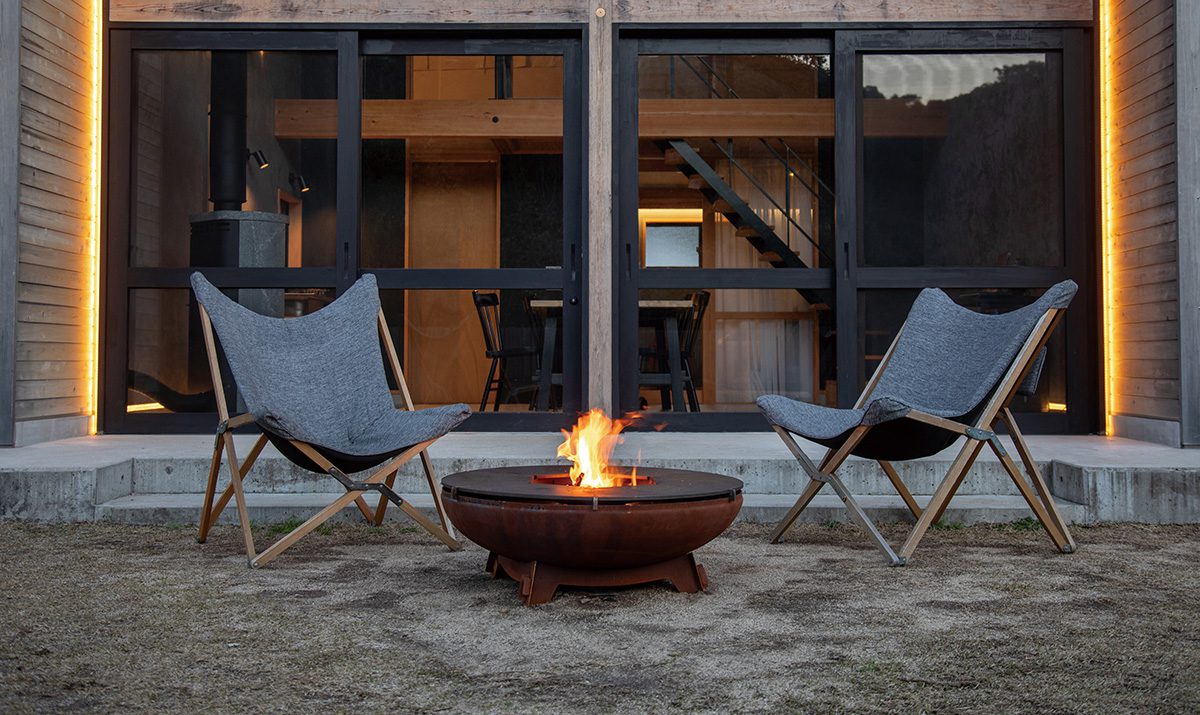 デッキや庭、アウトドアでも大地に近い目線で火を楽しめます。