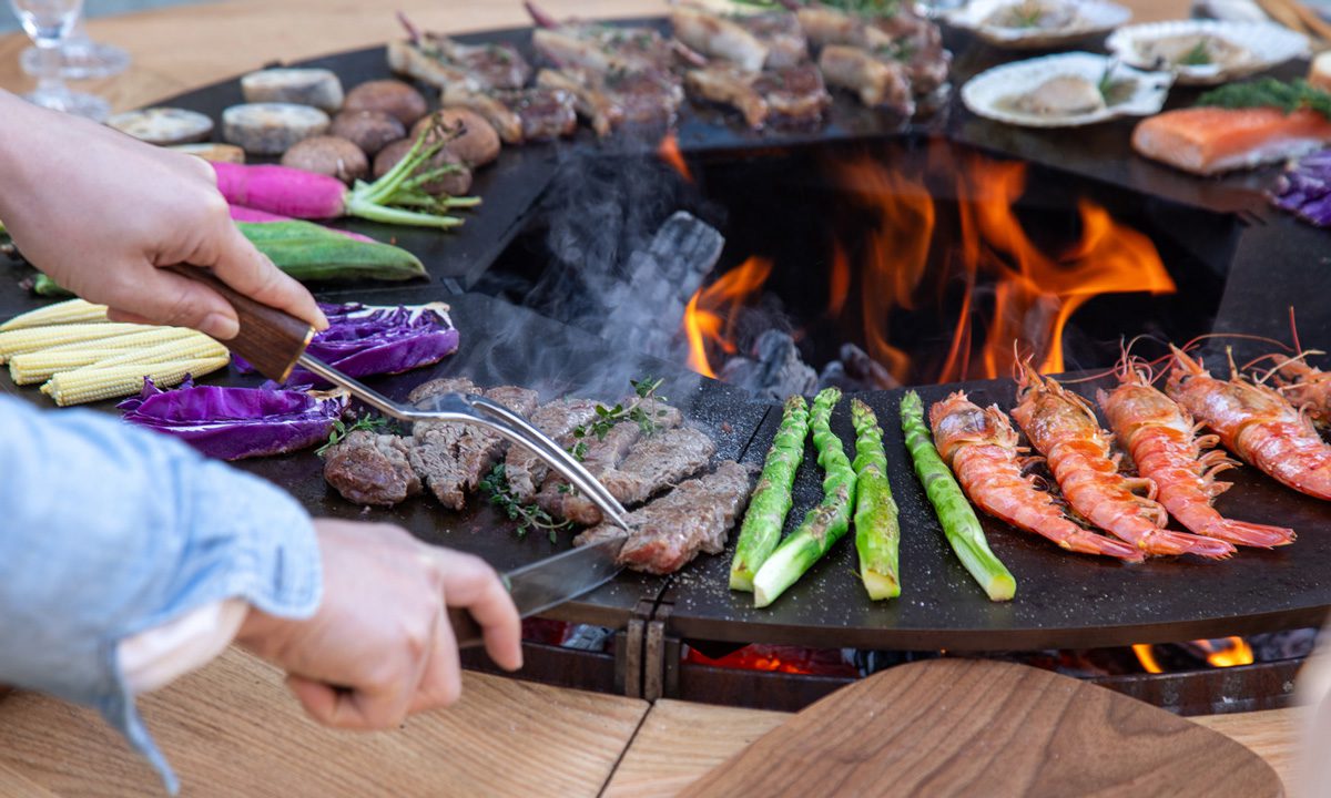 ボウル中央の炎がグリルにしっかりと熱を伝え、本格的な鉄板料理を可能にします。