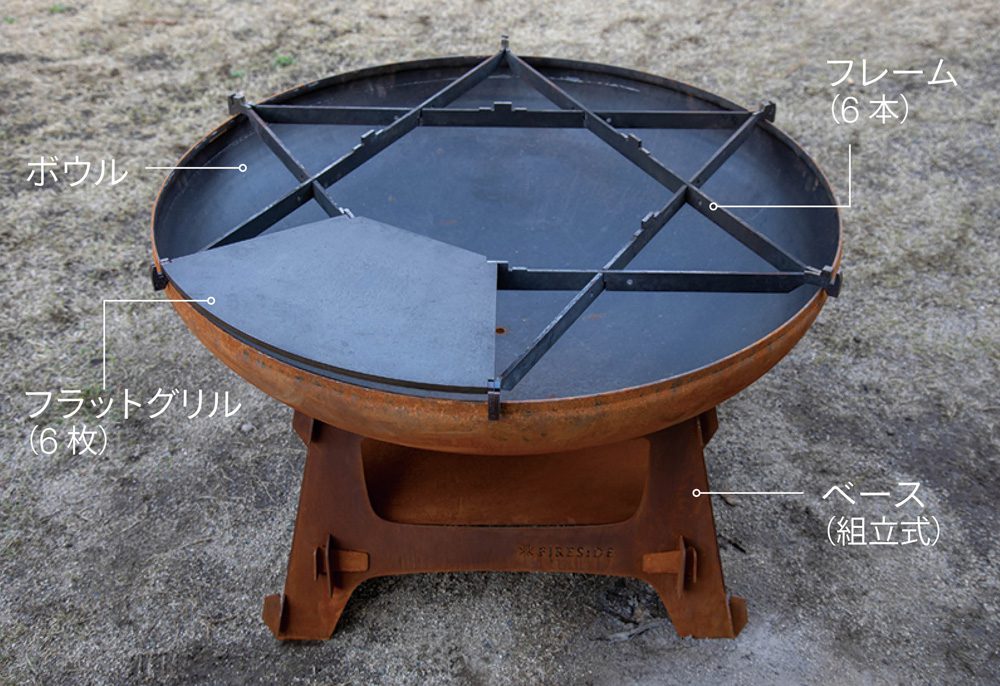 グリルとフレームは取り外し可能で、シンプルに炎を楽しむ焚き火台としても使用できます。
