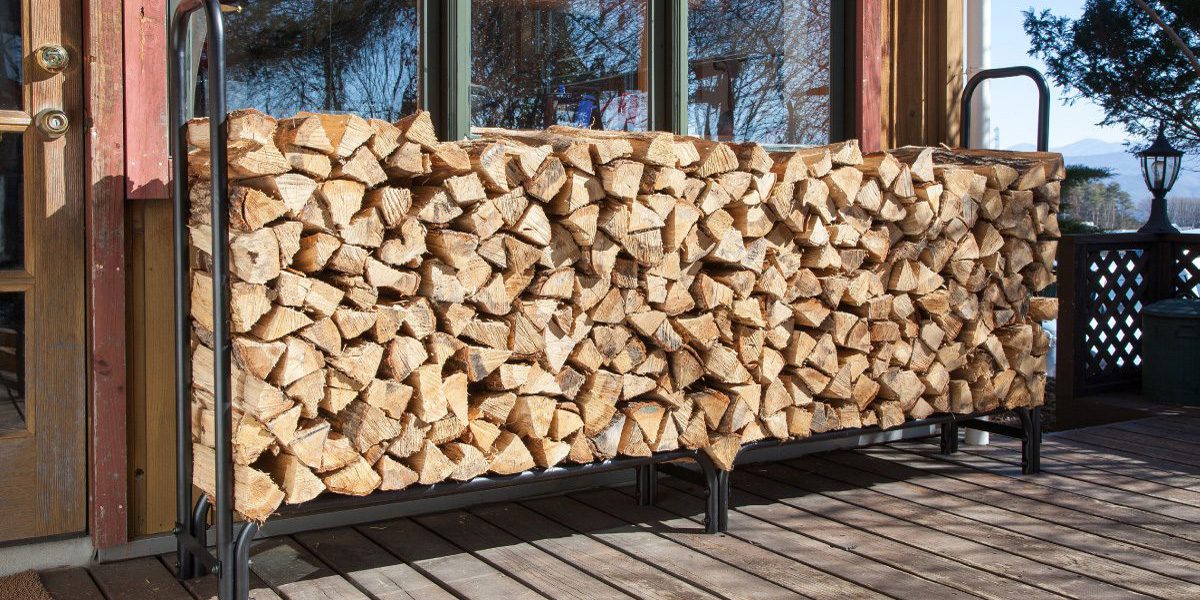 大容量の薪を収納し、重たい薪をしっかり支える鉄製ログラック。