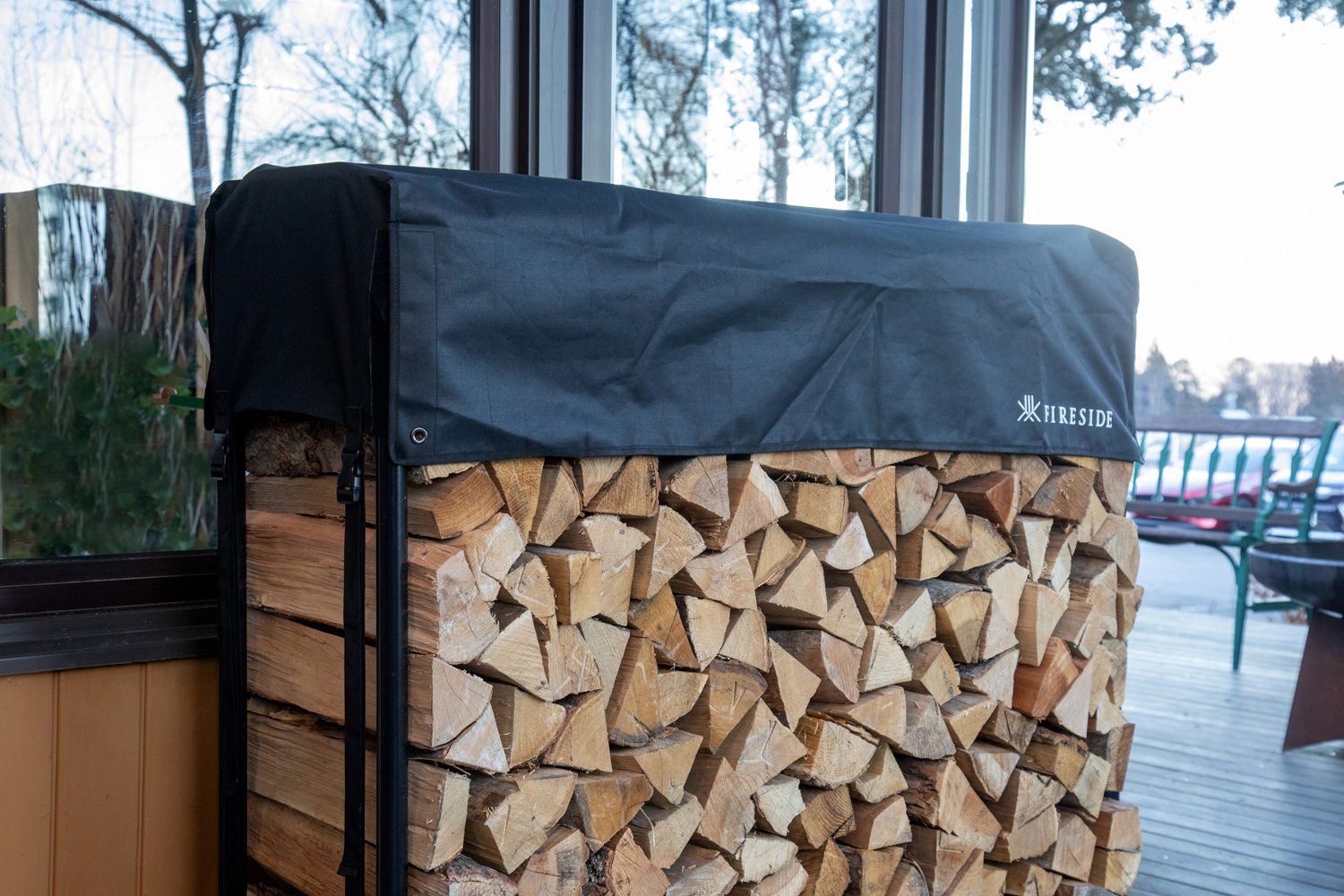 防水性・耐久性に優れ、屋外での薪保管をサポートします。