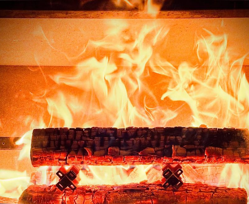 炉床と上下の薪の間に2本ずつ本品を置くことで、燃焼を促進する空気の流れを作り出します。