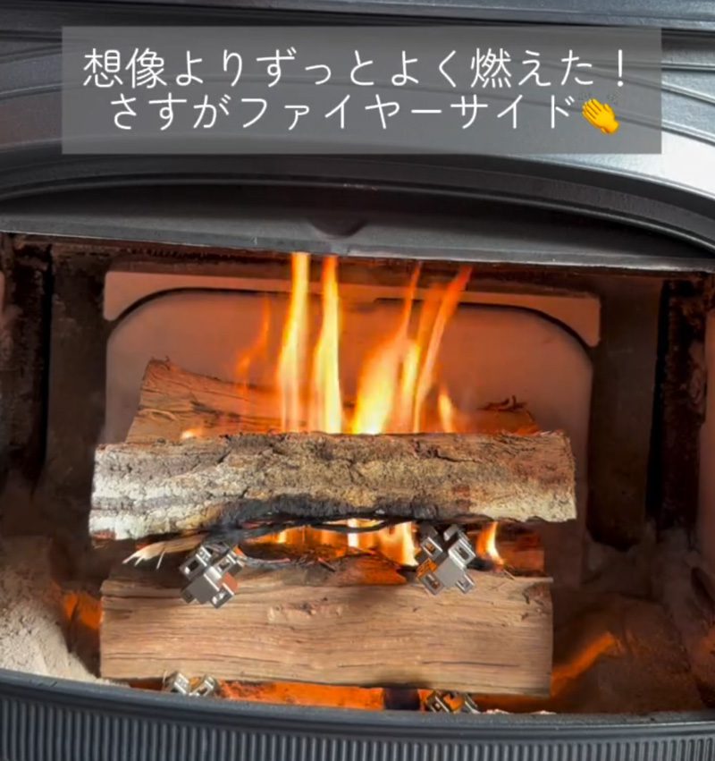 ・炎が薪に燃え移ったあと、薪全体が均等に燃え続けきれいだった。