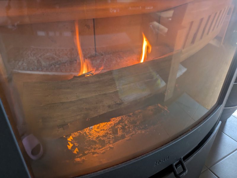 マニアックな考察をすると、バッフルがある現代モデルストーブの方が相性良いかも? バッフルが暖まることで熱反射が起き、下から通る空気+バッフルからの反射熱で 上下から薪を熱する事が出来るので、 よりスムーズに着火出来るような気もします。細割を省く事によって、薪の消費も少し抑えられるし。
