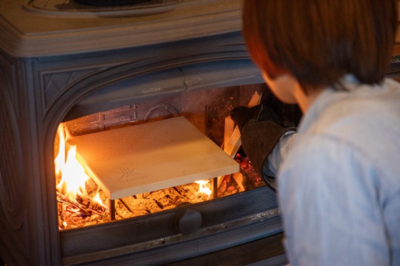 オーブン付きストーブではオーブン庫内で使用することで、ピザはもちろん、パンもワンランク上の仕上がりになります。