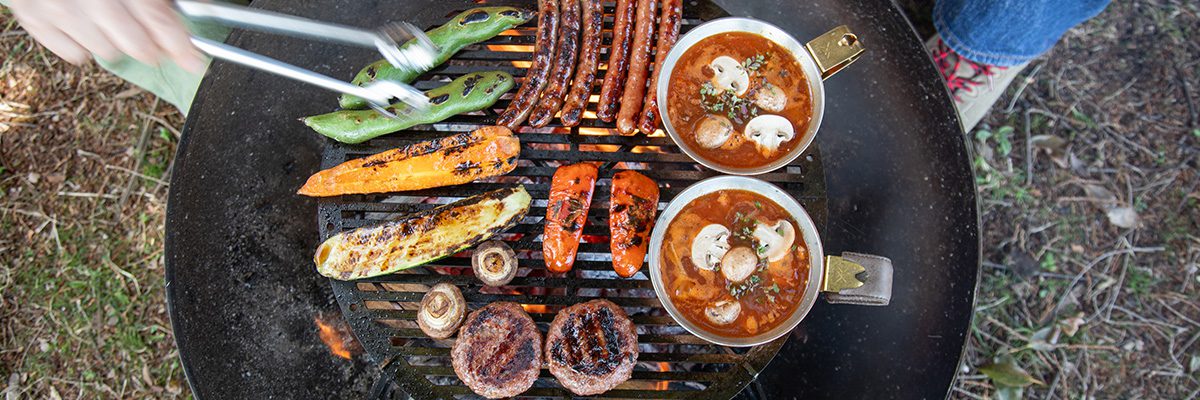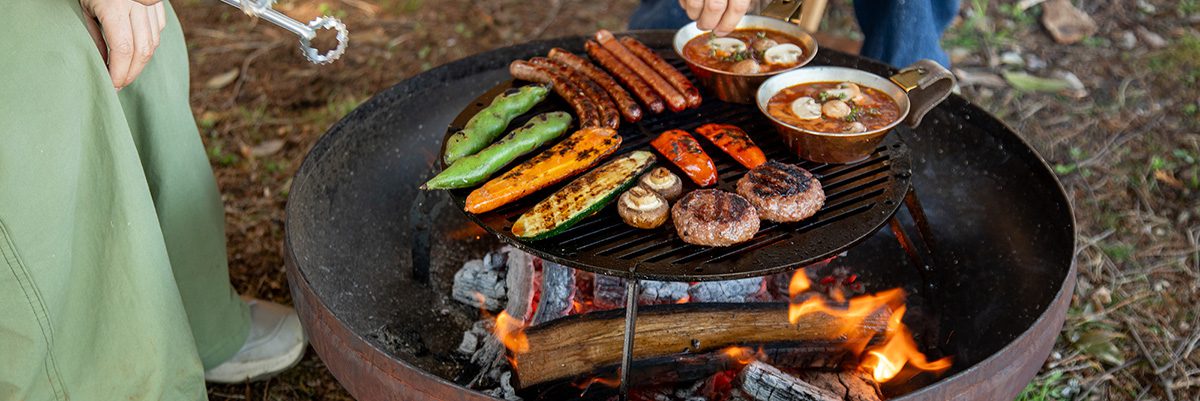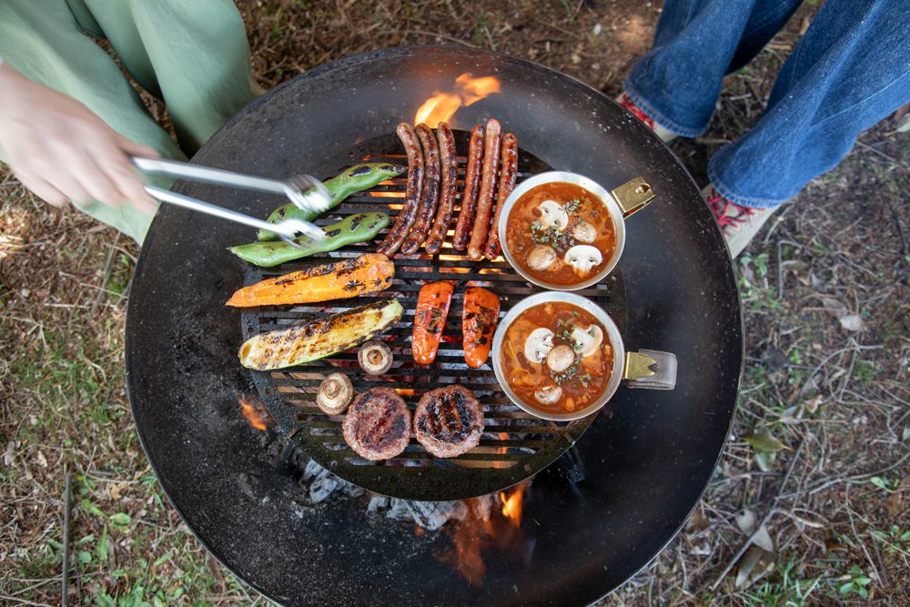 厚さ5.7mmの鉄製で安定した火入れを実現し、焚き火調理を存分に楽しめます。