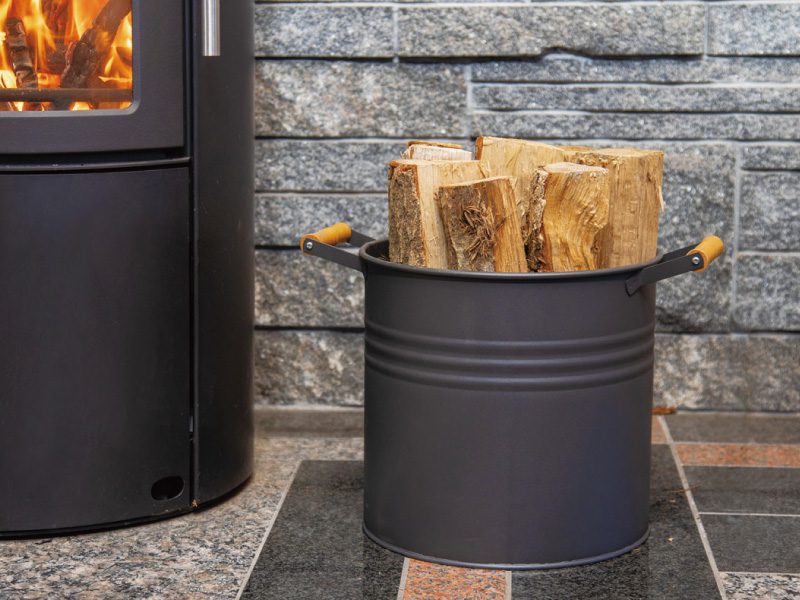 深さがあるので長い薪も安定してストックでき、くずが落ちない薪入れとして活躍します。