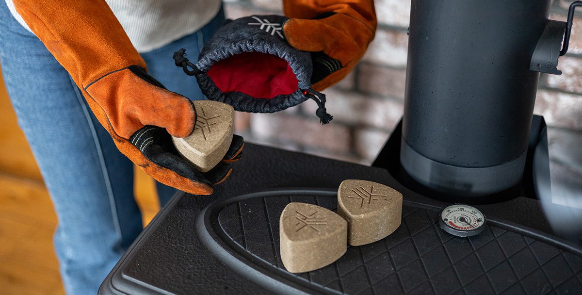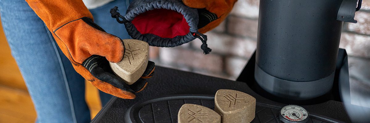 ストーブトップで蓄熱して、カイロとして使用するウォームストーンは3個セット。