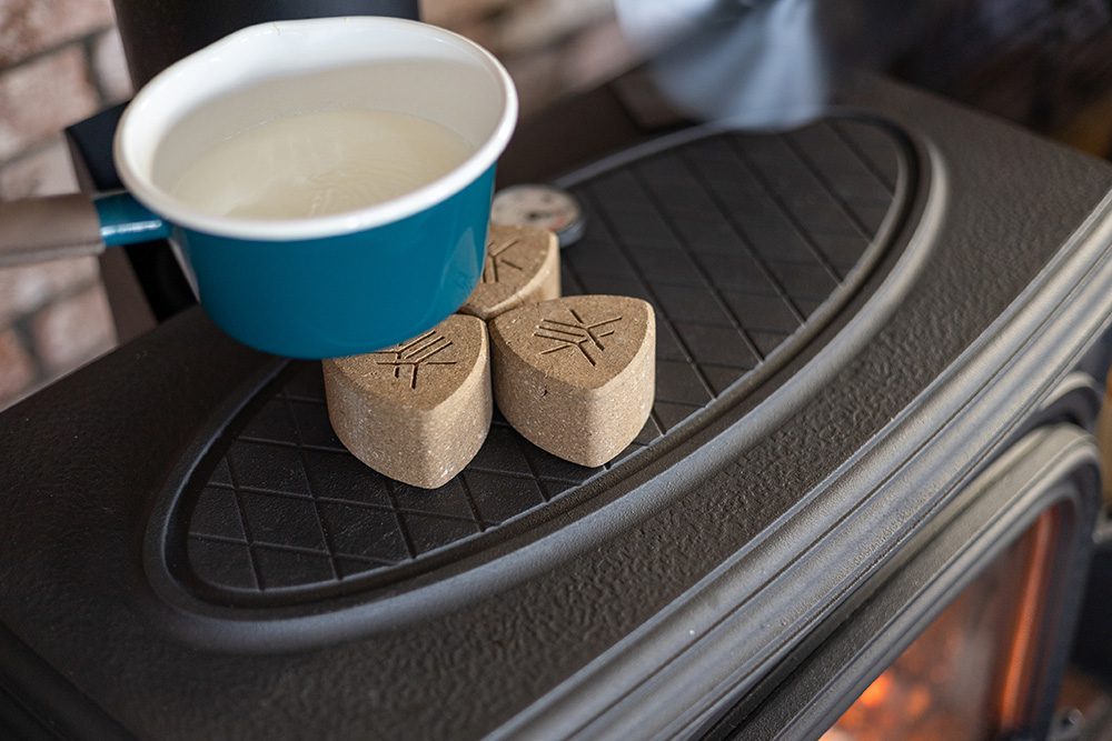 さらに、ストーブトップのコースターとしてカップを置いたり、トリベットにして鍋を置いても、ほどよい温度が保てます。