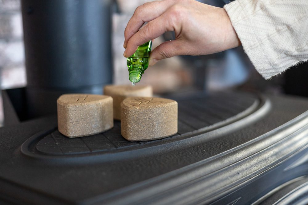 エッセンシャルオイルを数滴たらせば、熱によって香りが部屋に広がり、アロマストーンとしても楽しめます。
