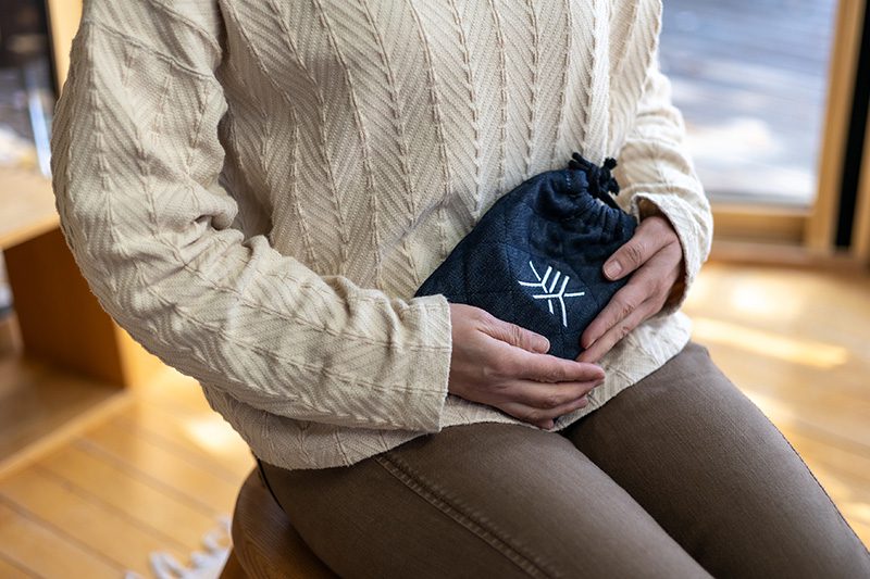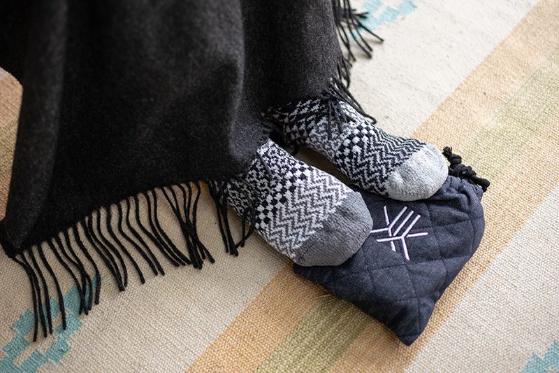 付属の収納袋に1個入れてお腹に当てたり、3個フラットに入れてフットウォーマーにしたり、
