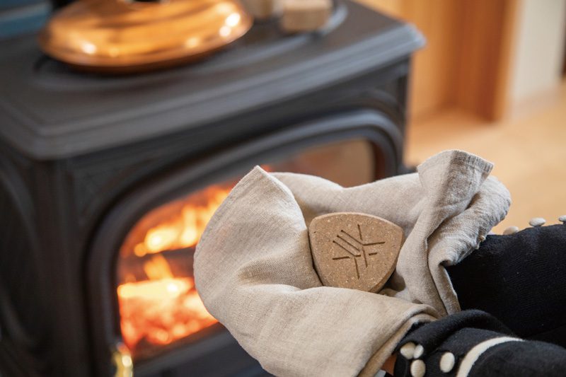 眠る前には、湯たんぽとウォームストーンを準備して。ストーブがくれるぬくもりは、そばを離れても家族を包み続けます。