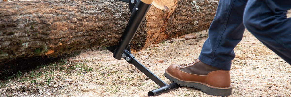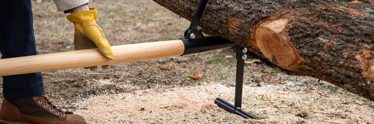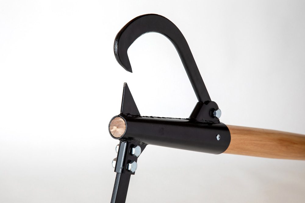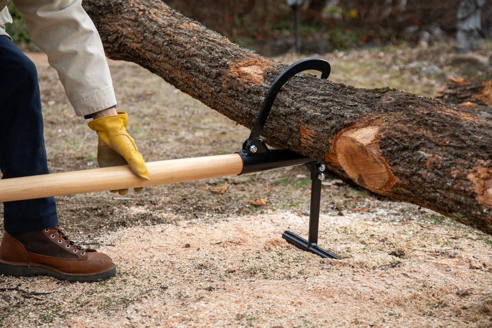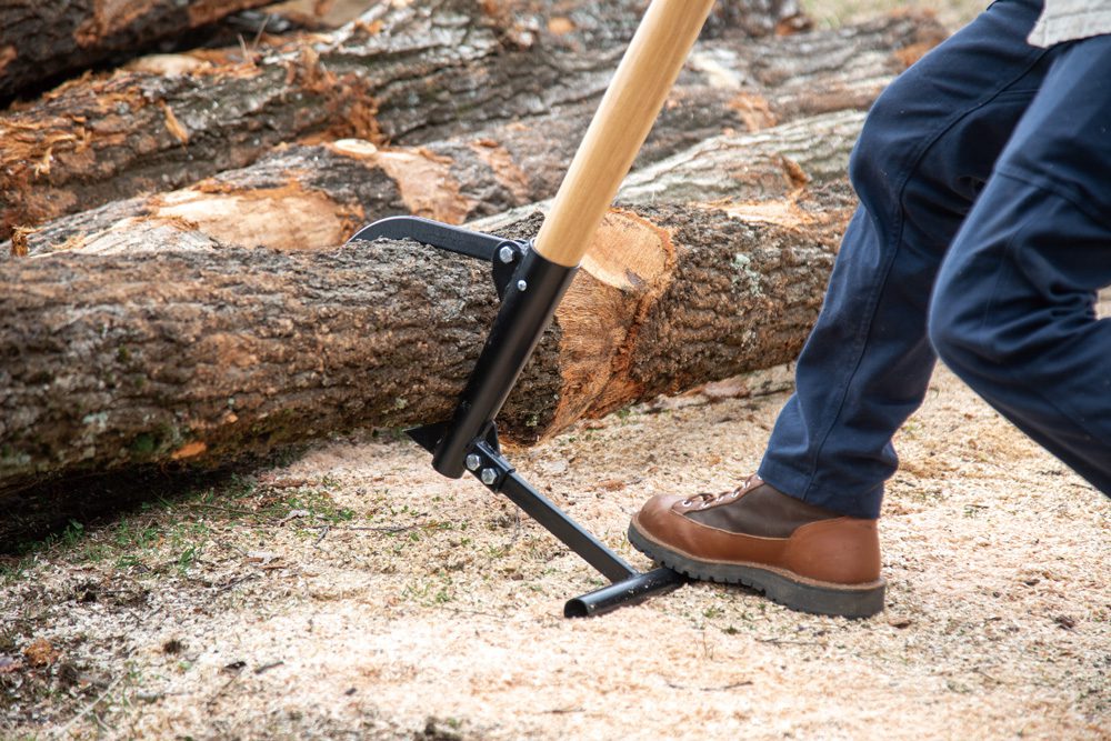 柄は木製ハンドルを採用。 しっかりした径と長さがあることで、丸太を持ち上げやすくなっています。